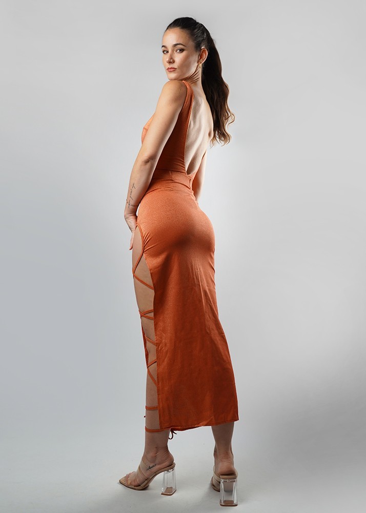 Original falda de lycra, sus tiras atadas en la pierna la hacen segura y cómoda para bailar.