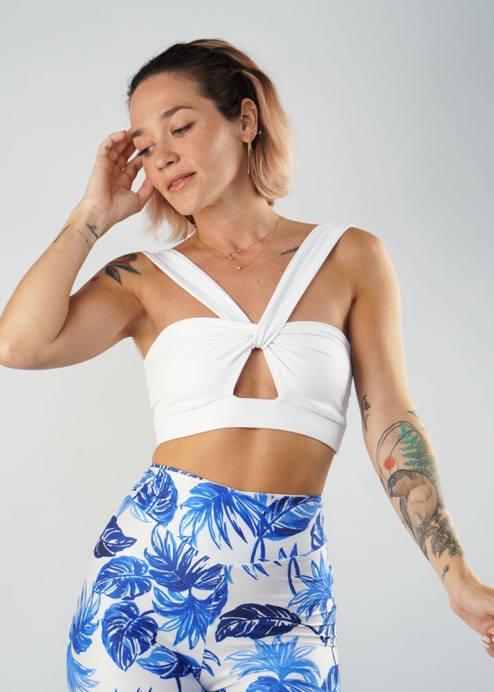 Top de lycra reciclada de plásticos del mar, con apertura para cascos, ajuste firme debajo del pecho y diseño sofisticado. Combínalo con nuestros pantalones o faldas para un total lookCopas no incluidas, puedes...