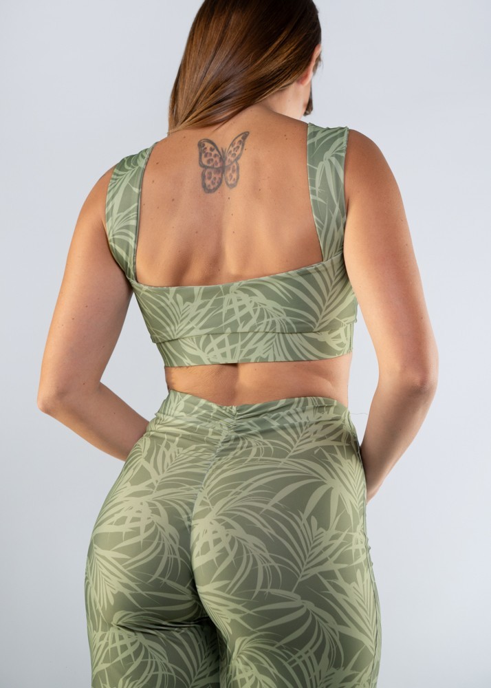 Top de lycra con apertura para cascos, ajuste firme debajo del pecho y diseño sofisticado.