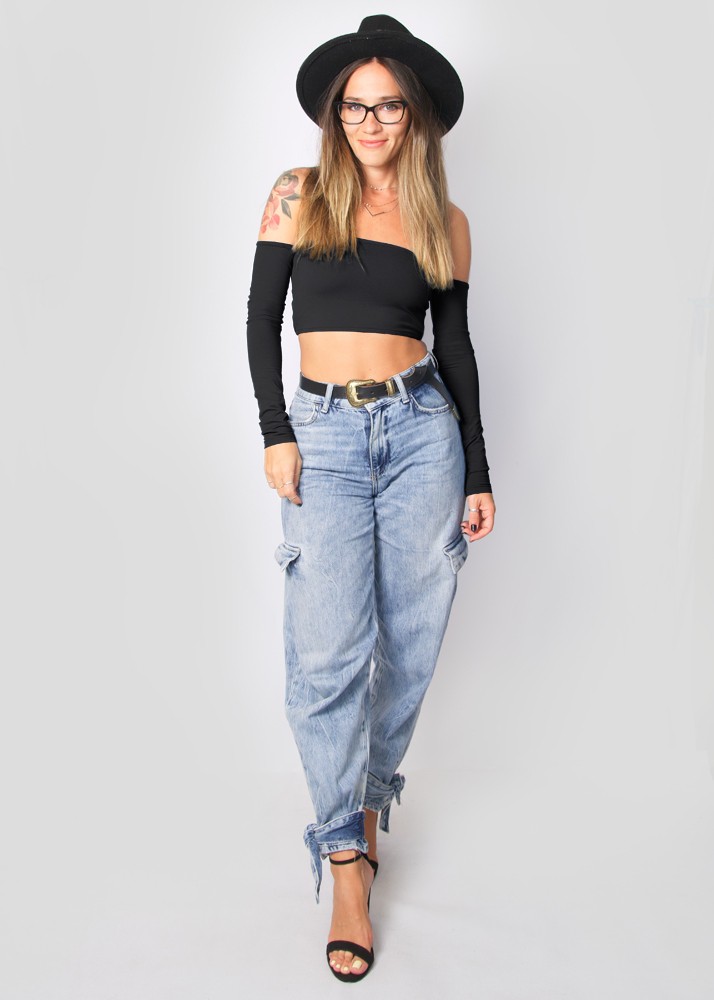 Top Andrea mangas negro