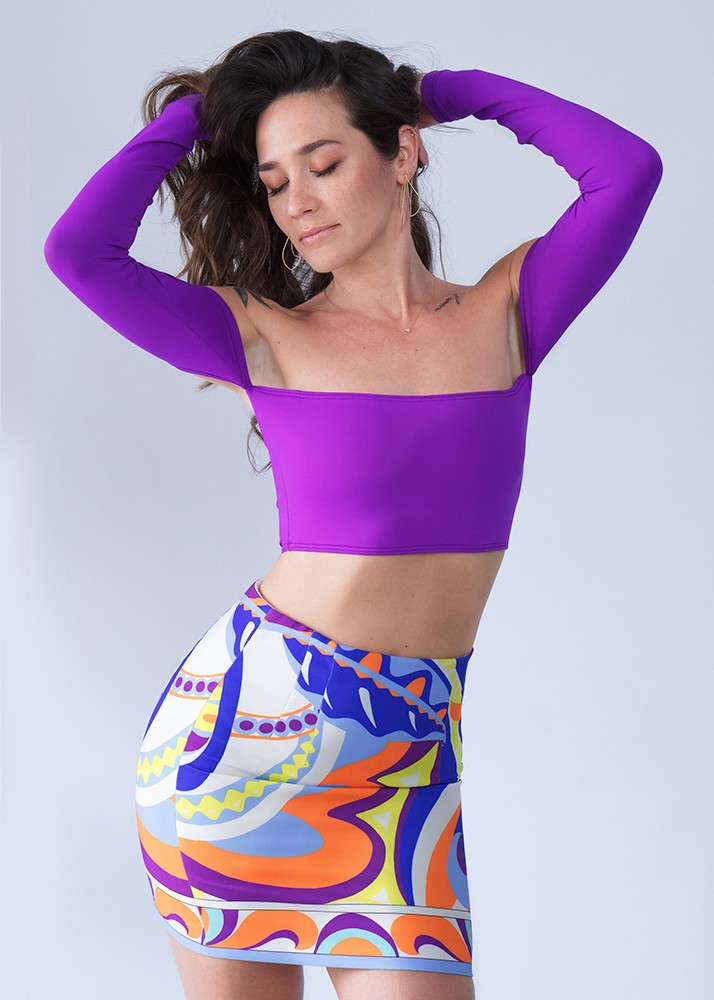Top fabricado en España con licra de poliéster reciclado de plasticos del mar, tiene doble forro en su pieza delantera con abertura interior para cascos.