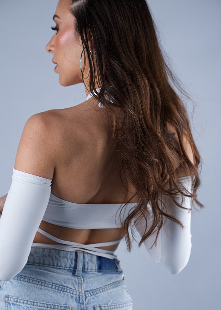Top de lycra con apertura para cascos, ajuste firme debajo del pecho y diseño sofisticado. Combínalo con nuestros pantalones o faldas para un total lookCopas no incluidas, puedes añadirlas a tu pedido más abajo.