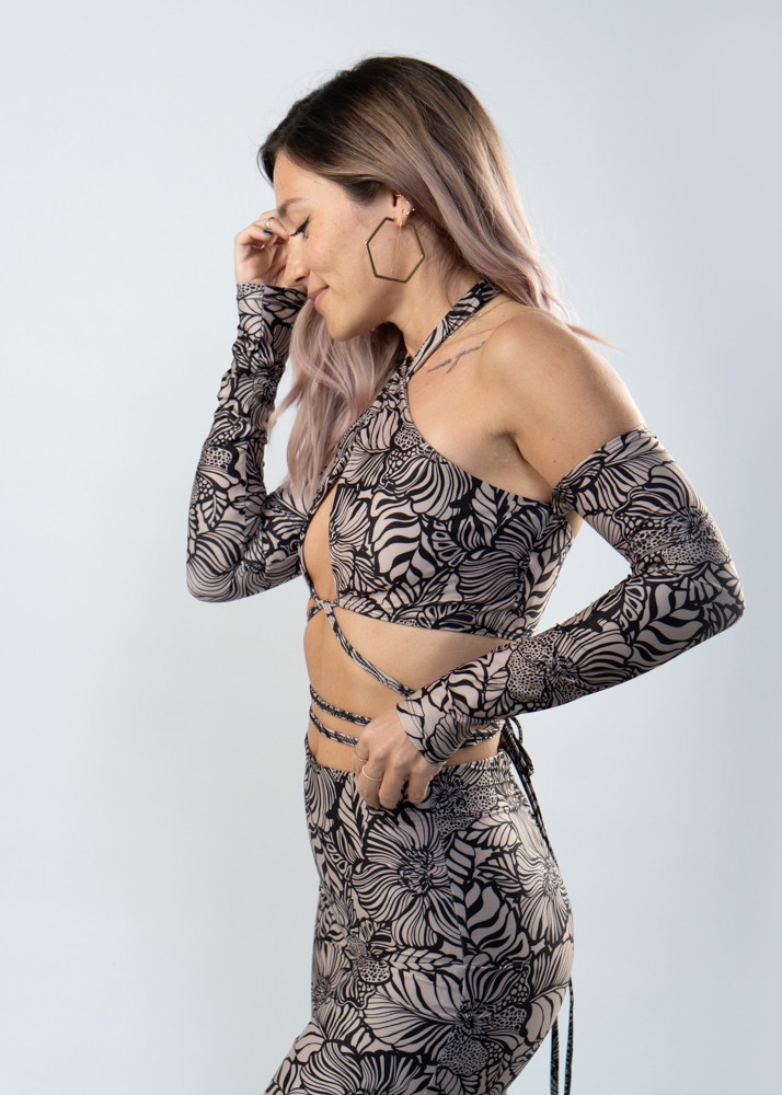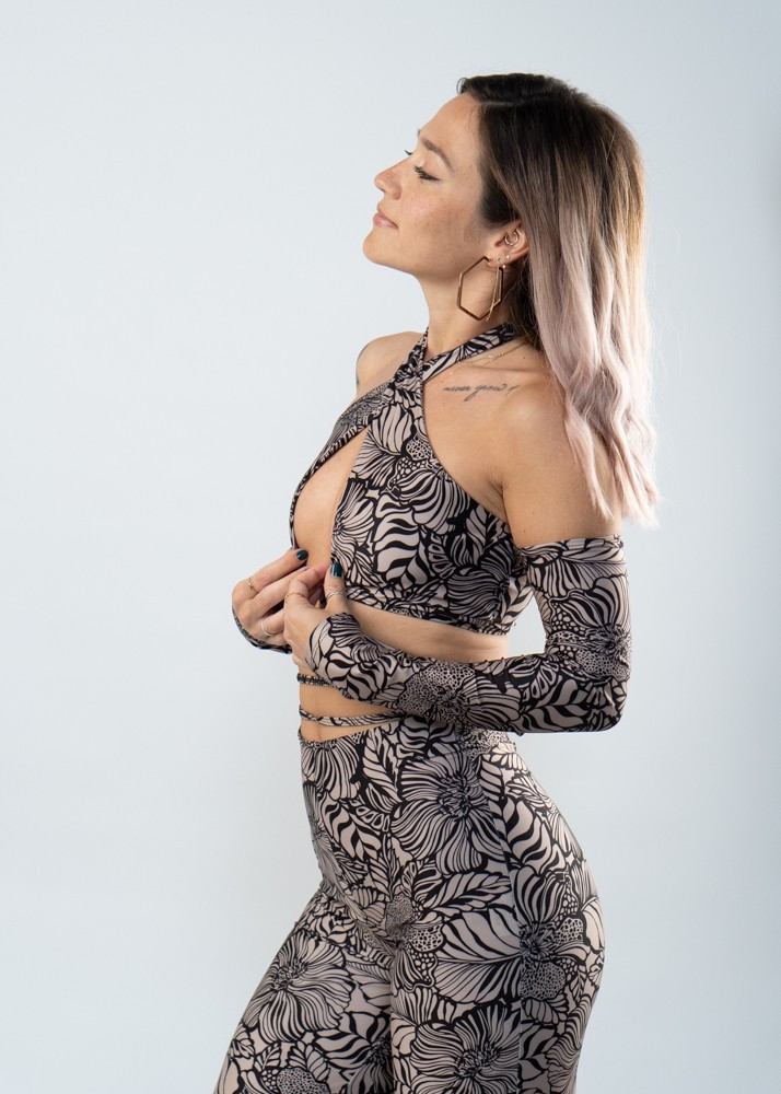 Designed by Desirée Pérez and manufactured in Spain with lycra. Comfortable to move around and goes with everything. Fully adjustable top in the neck and torso, you can create different ways to wear it by playing with the placement of its straps. It has an interior opening so you have the option of wearing it with helmets or cups, they are not included but you can purchase them separately.