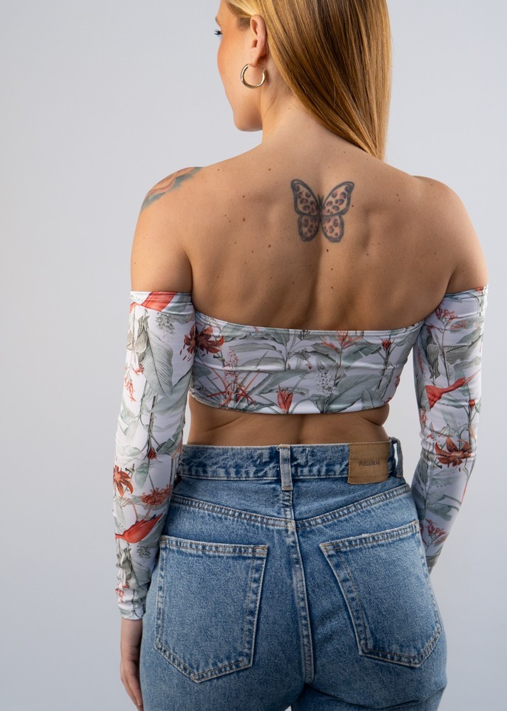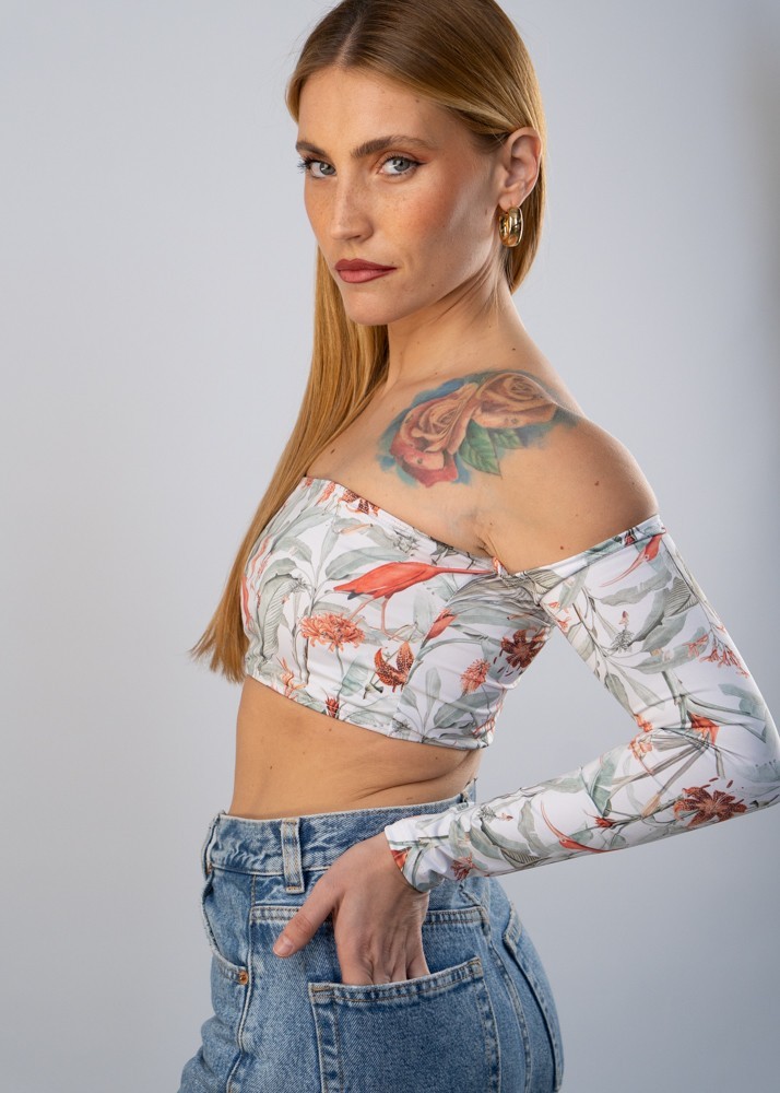 Crossover top with sleeves, fully adjustable in neck and torso. Double lycra fabric on the chest, with helmet pocket.