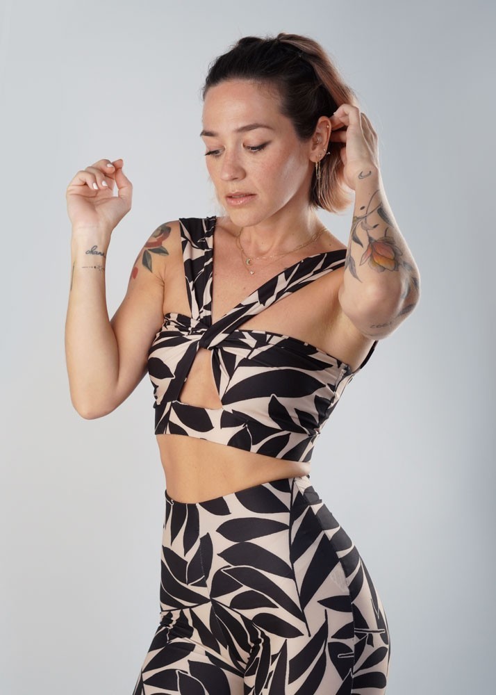 Lycra top with a helmet opening, a firm fit under the bust, and a sophisticated design.